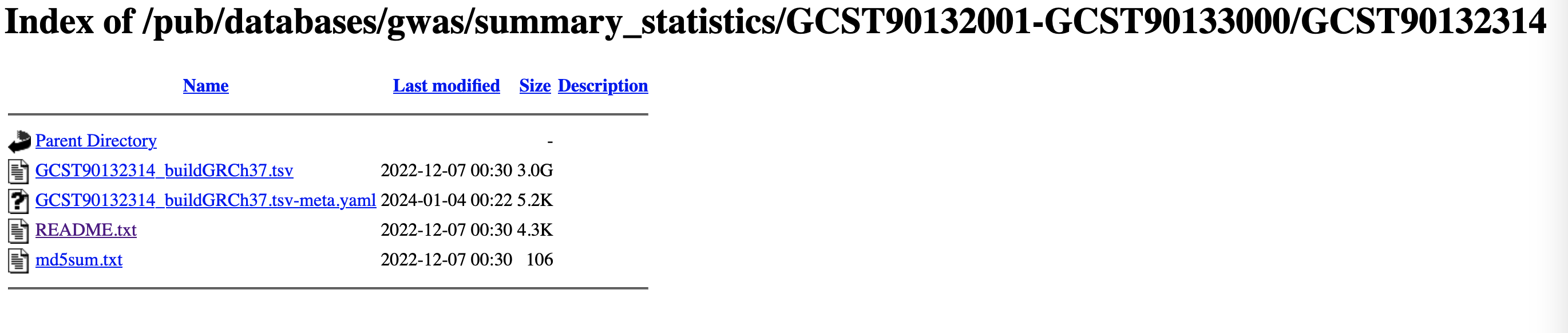 To use this summary statistics, coronary artery disease data, you can download the original tsv file. The file size is around 3GB, which exceeds the limit of 600 MB of BIGA's input file. We recommend you to use linux `awk` command to extract those necessary columns like snp, chromosome, position, a1, a2, eaf, se, odds_ratio, pvalue, se in the file.